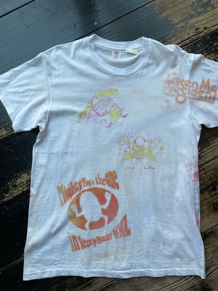 - 70s 1970s 転写紙 カスタム 総柄 ヴィンテージ Tシャツ 古着 染み込み プリント USA製 80年代 雰囲気 キャラクター レトロ
