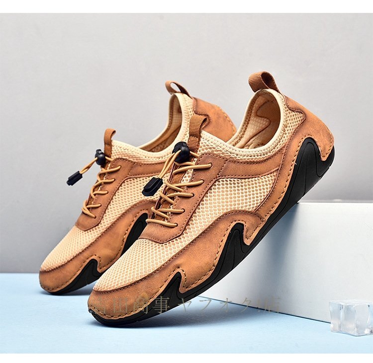 > ★新品メンズシューズ 牛革ドライビングシューズ登山靴運動靴本革レザーランニング ウォーキング 春夏 秋靴 通気性茶色24~28.5cm