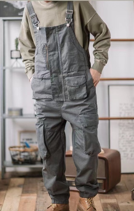 - オーバーオール サロペット メンズ ゆったり つなぎ オールインワン ワークパンツ 作業服 グレー/XL