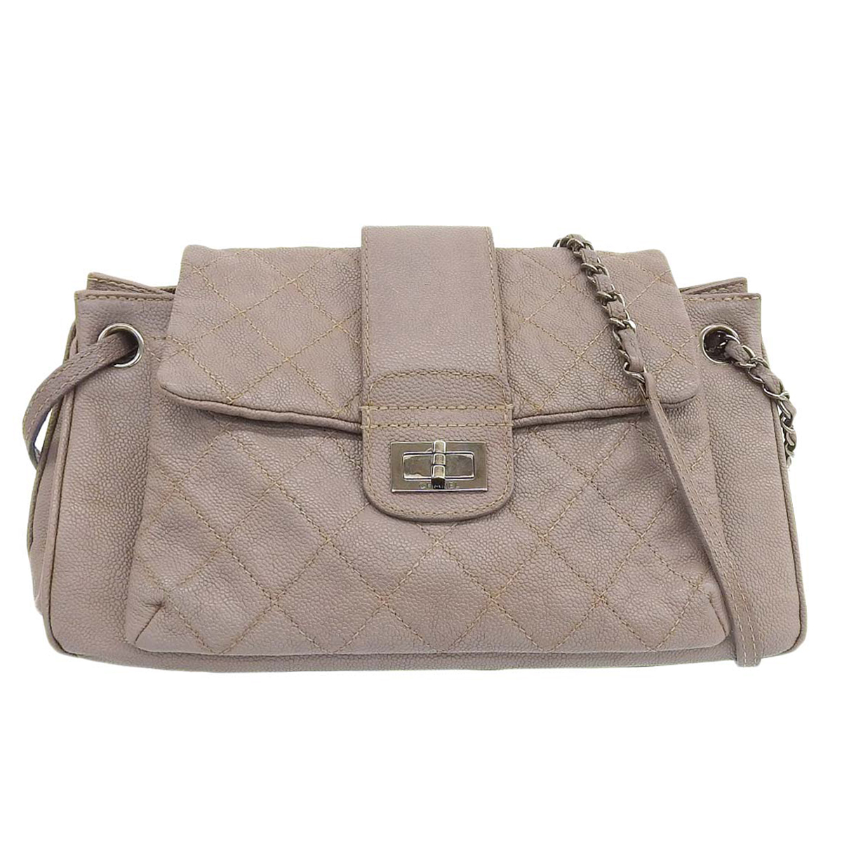 - シャネル CHANEL 2.55 ショルダーバッグ ハンドバッグ キャビアスキン レザー グレー レディース 15番台 4267