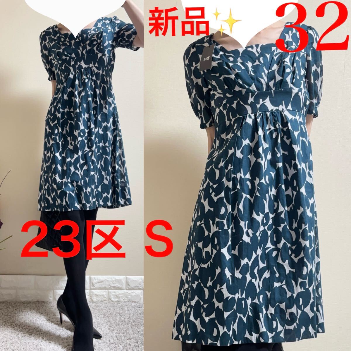 - 新品!23区 小さいサイズ 定価2.8万円 キャミ付き ワンピース 32 5号