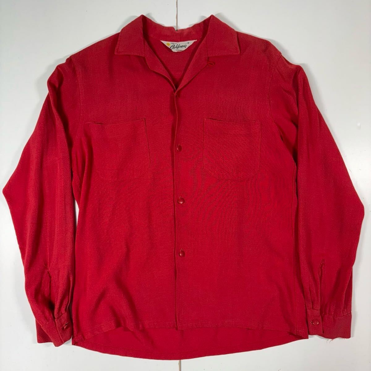> 【S】60s Vintage California Open Color Rayon Shirt Red 60年代 ビンテージ カリフォルニア オープンカラー レーヨン 長袖 シャツ F1589