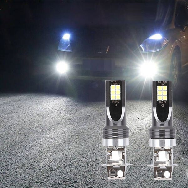 - LEDフォグ LEDバルブ 12SMD 24V H3 6500K ホワイト 白 3030SMDチップ LEDフォグランプ 2個セット N547-3