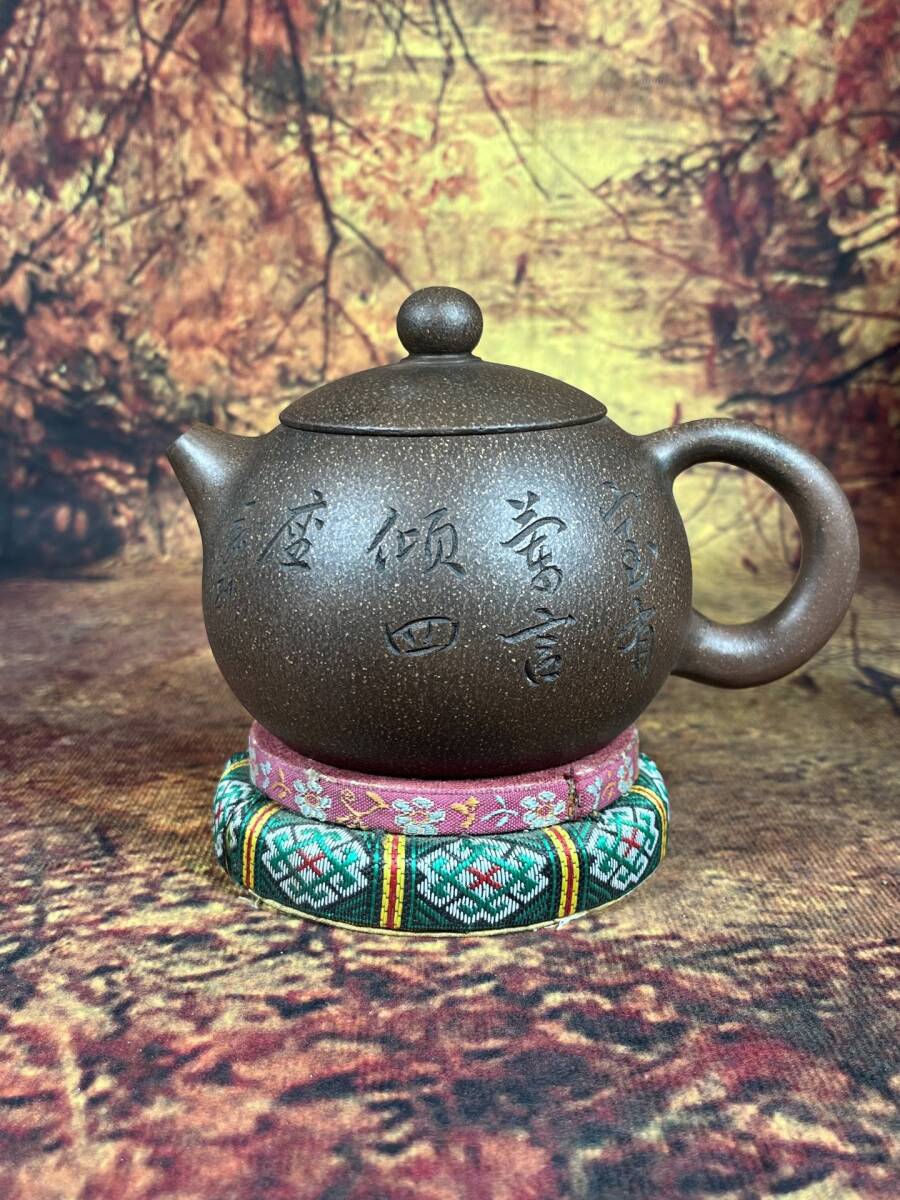 - TM6#1409【3.1】人間国宝 中国骨董 紫砂壺【旧蔵。紫砂壷『金鼎商標』磁器 工芸品 陶芸 精美彫 置物 收藏品 伝世家珍