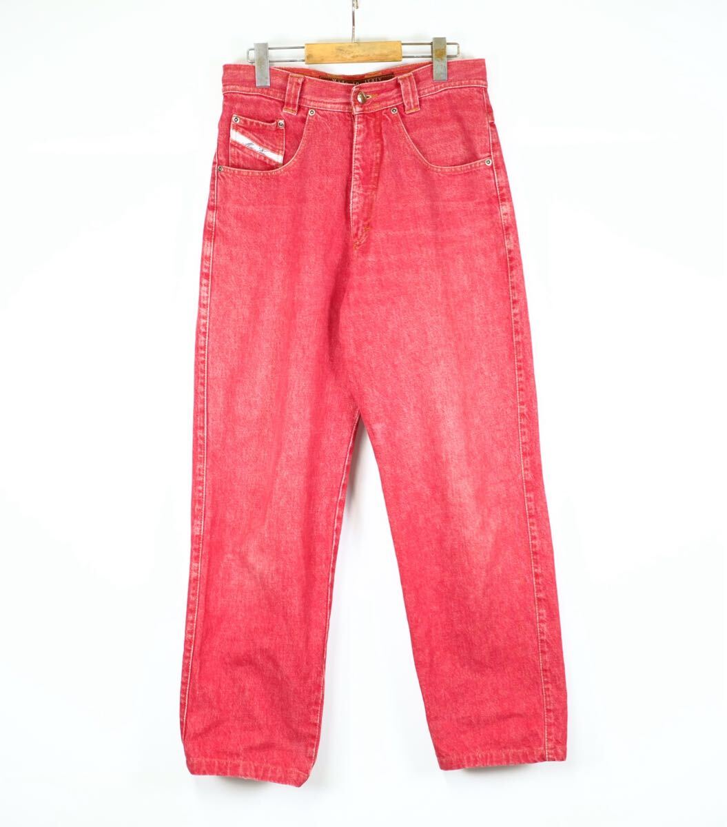 - イタリア製 ビンテージ レッドデニムパンツ 古着屋 ユーロ レアカラー 赤 コットン フランス