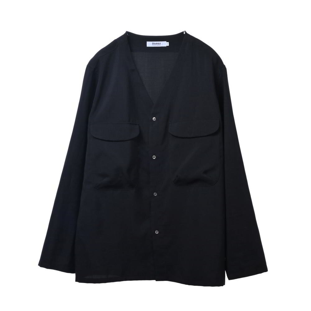 > 美品 District ノーカラー シャツジャケット M ブラック ディストリクト KL4BHKLU82