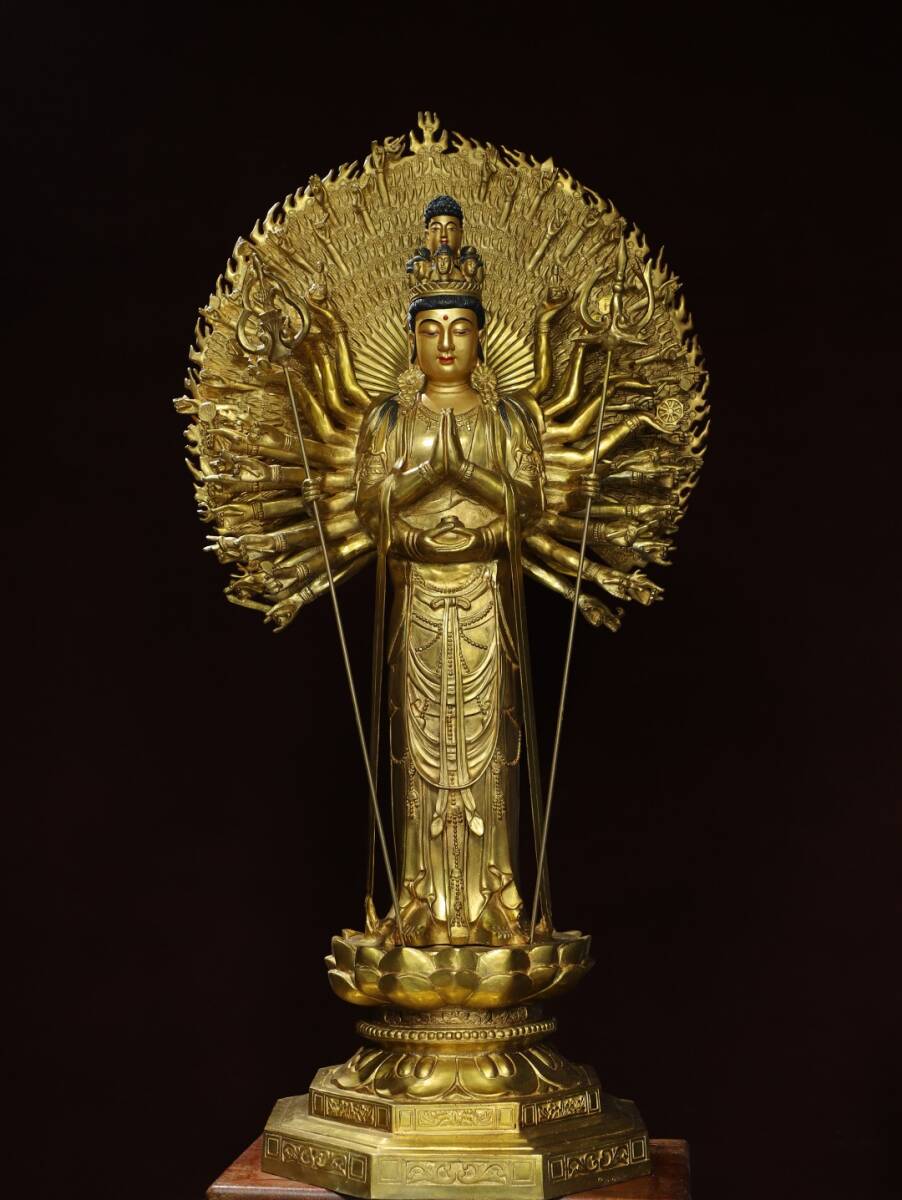 - 唐物 明 永樂年製 大判仏像-高さ88 cm銅塗金描彩【千手観音】 仏像 奉納されていた 供養品 銅製 古美術品 時代物 中国古玩 骨董品 D66