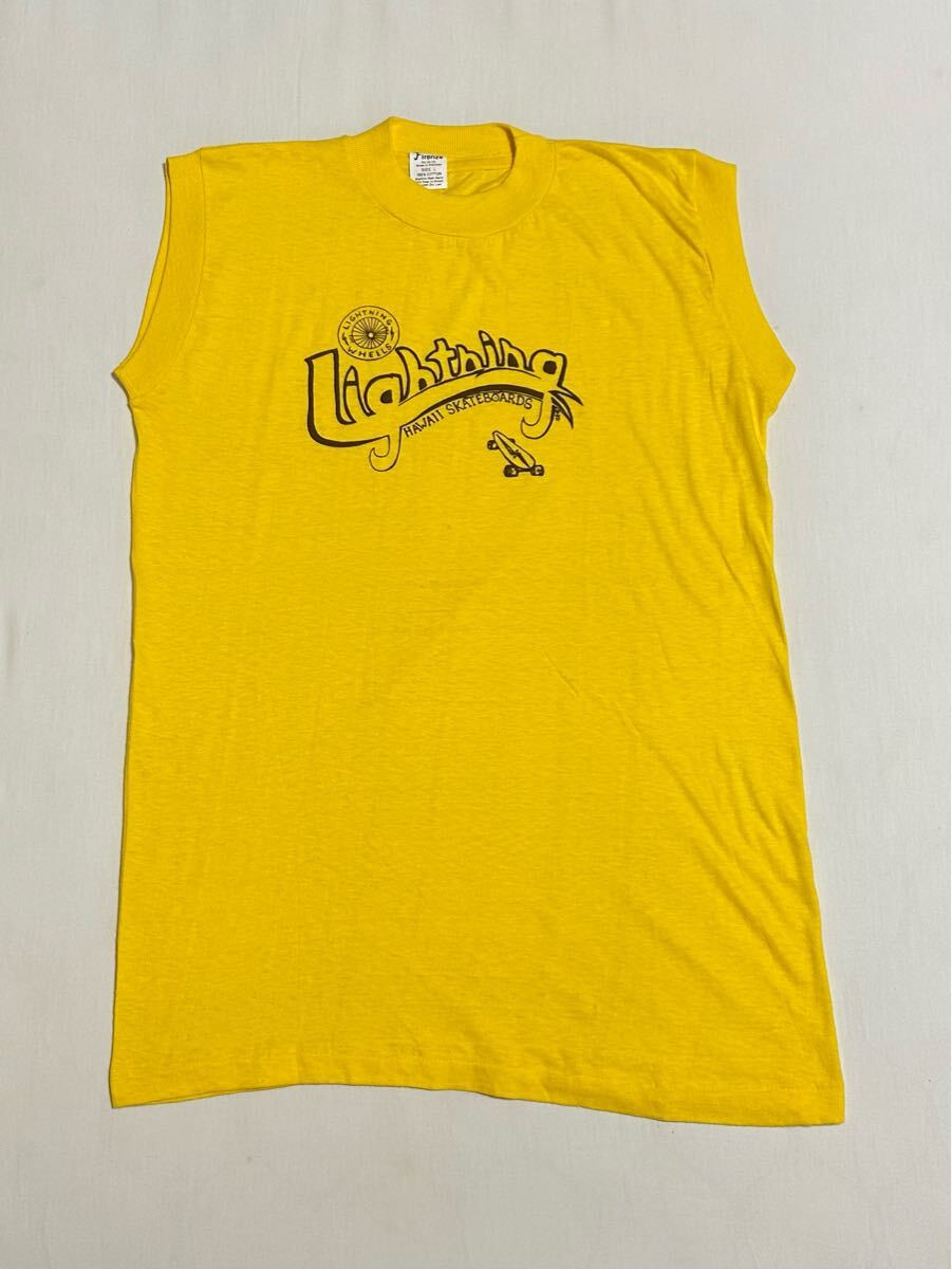 > デッドストック◎70s 80s vintage パキ綿 タンクトップ Tシャツ L 黄色 ヴィンテージ L OLD SKATE SANTA CRUZ POWELL 90s オールドスケート