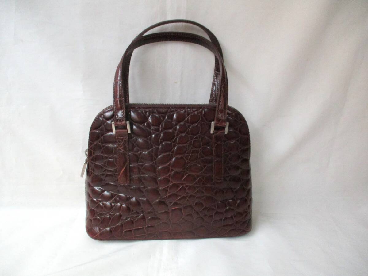 - レトロ イタリア製 FURLA フルラ ハンドバッグ 型押し ダークブラウン (管29-80LB)