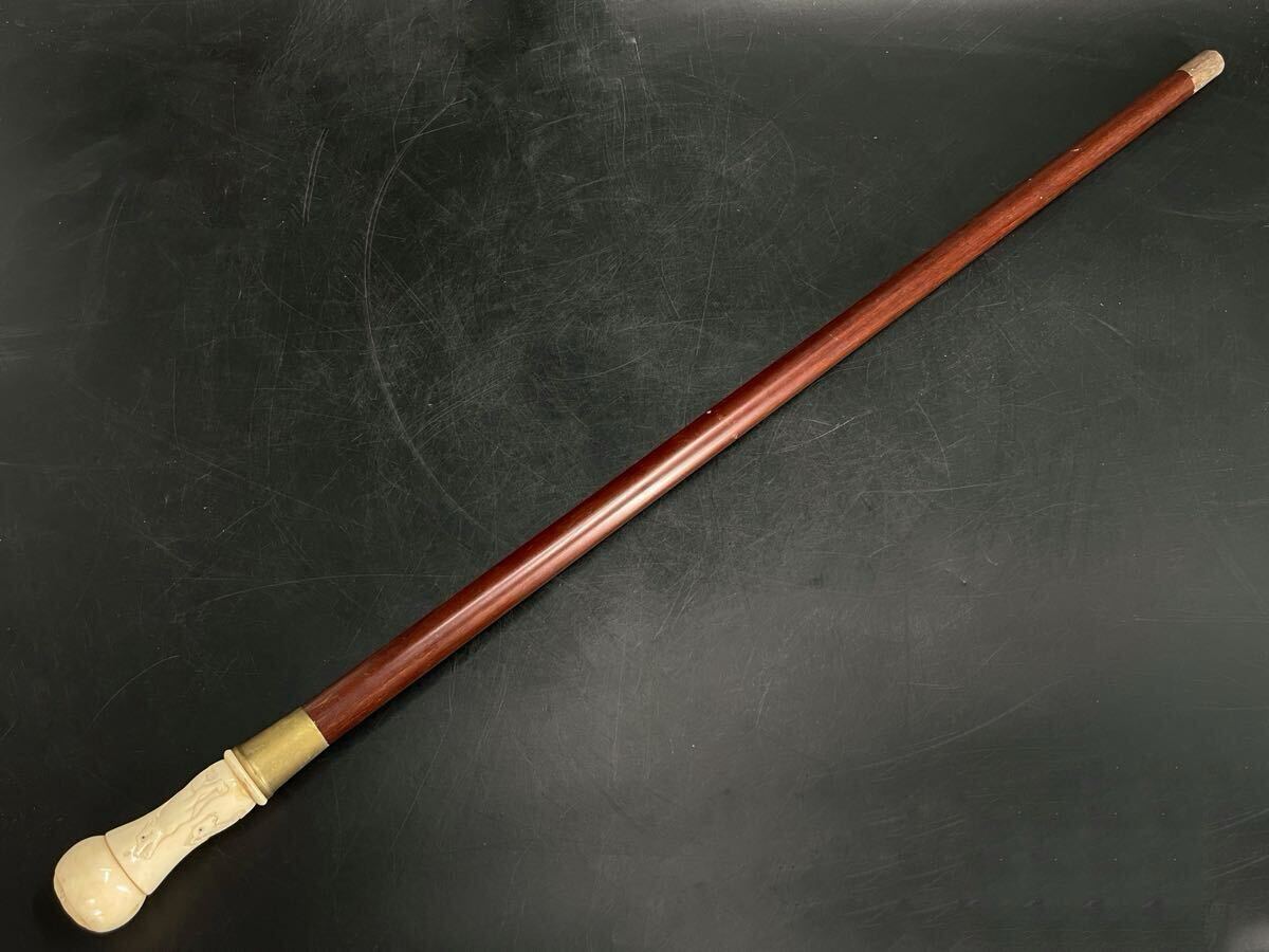 - 時代 マンモス製 持ち手 唐木 杖 / マンモス 彫刻 木工芸 木製 ステッキ .G1788