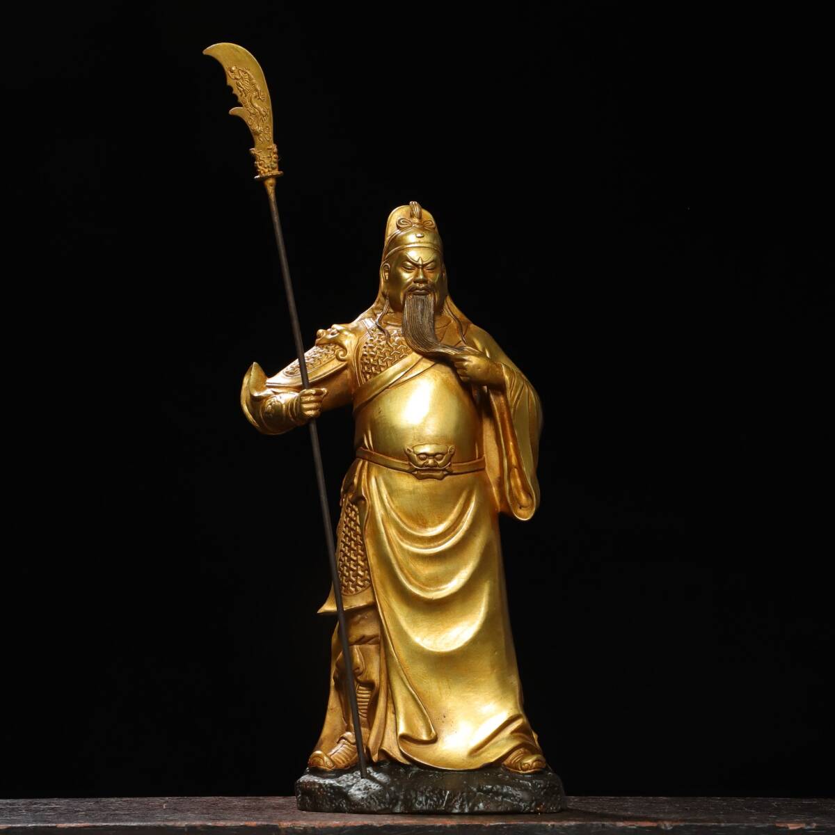 - 『館蔵珍品 銅製 塗金 關公像 仏像 宗教 仏教古美術 供養品』稀少珍蔵品 古賞物 貴重物品 収蔵品 中国古美術 時代物 古董品