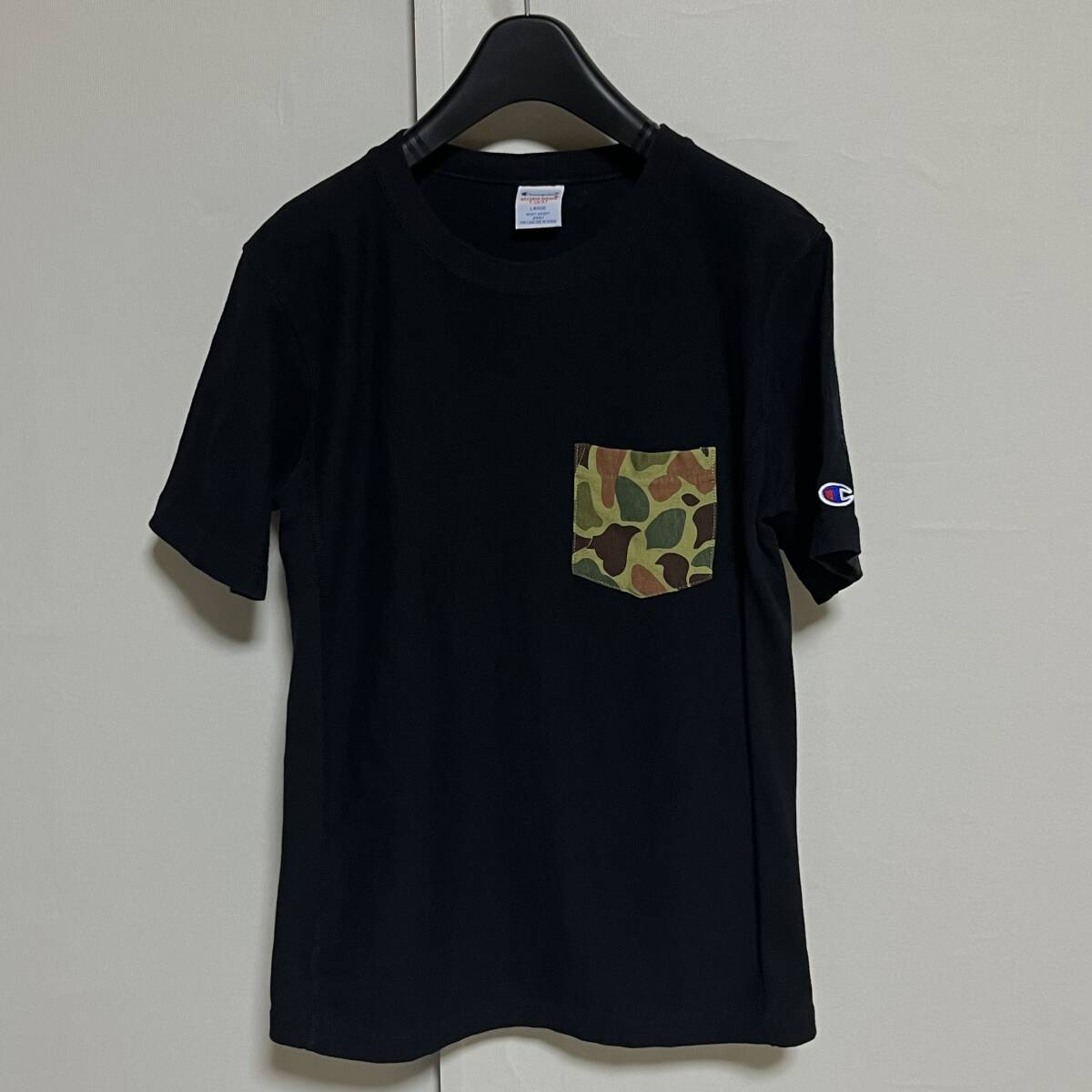 - Champion チャンピオン リバースウィーブ Tシャツ 黒+m迷彩 L 美品 管理B1522