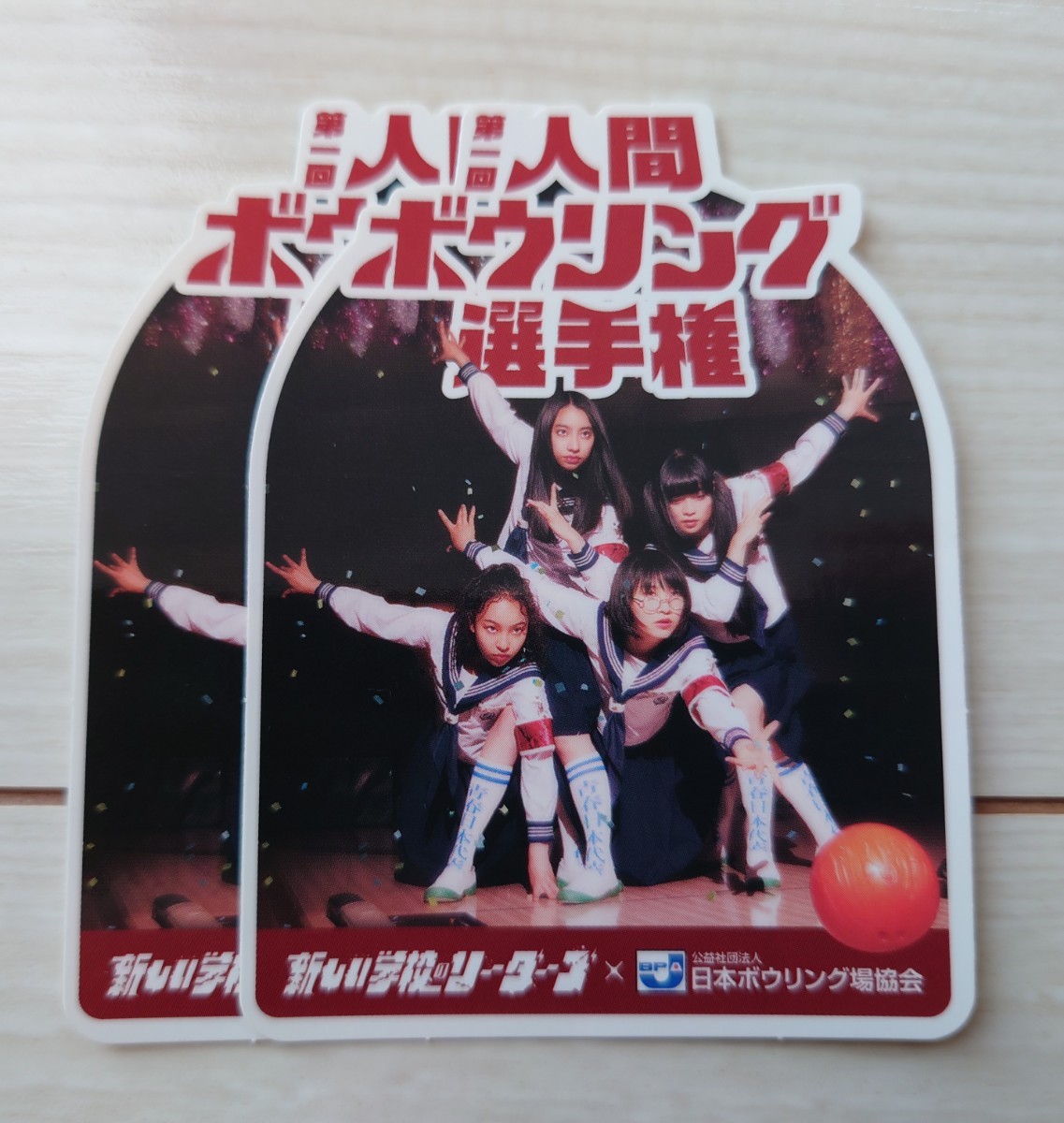 - 送料無料 新しい学校のリーダーズ 第一回人間ボウリング選手権 ステッカー 2枚 ATARASHII GAKKO! MIZYU SUZUKA KANON RIN