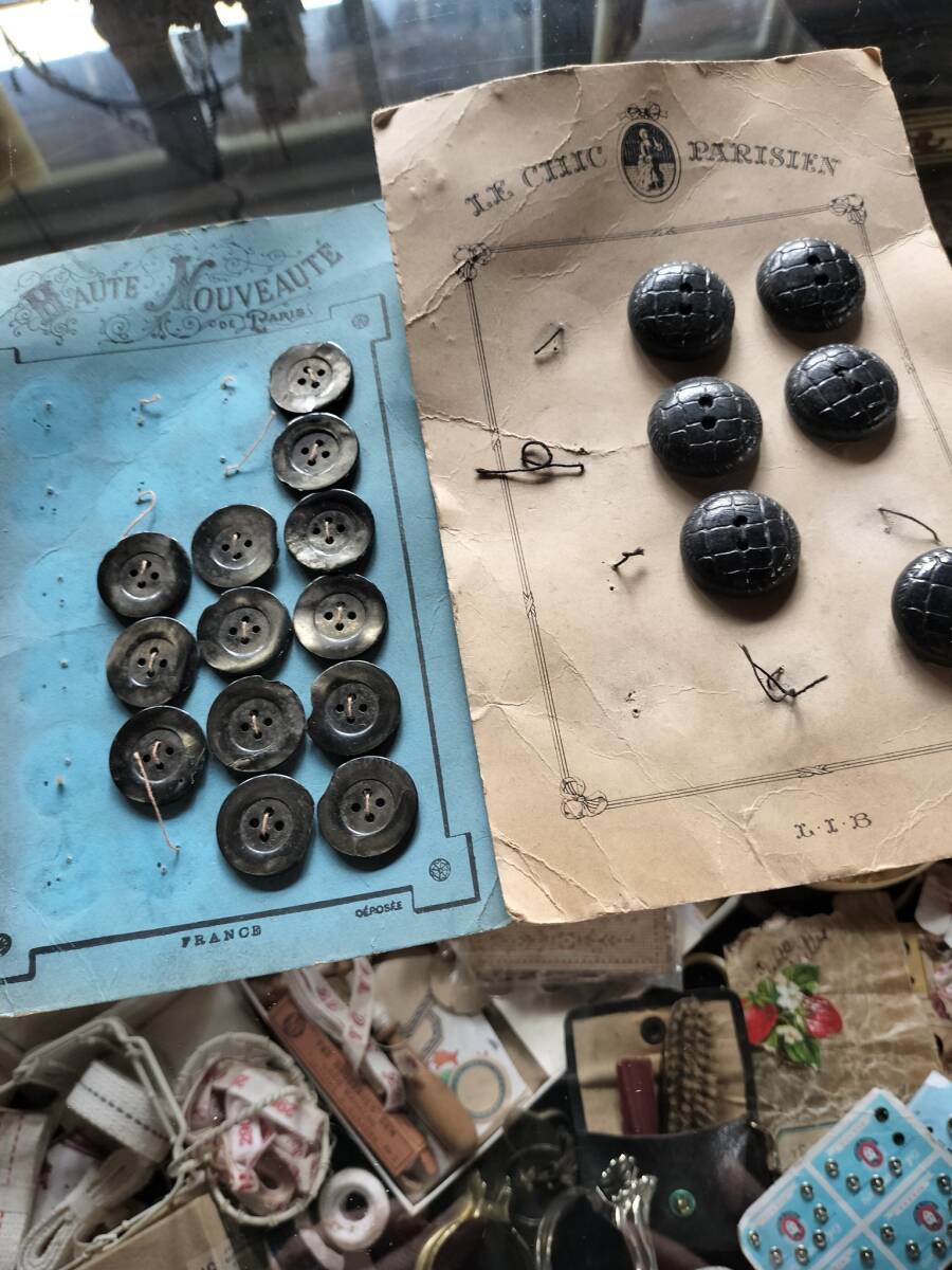 > フランス アンティーク Haute Nouveaute ボタンシート 貝、Le Chic Parisien ボタンシート 19点セットのボタン!
