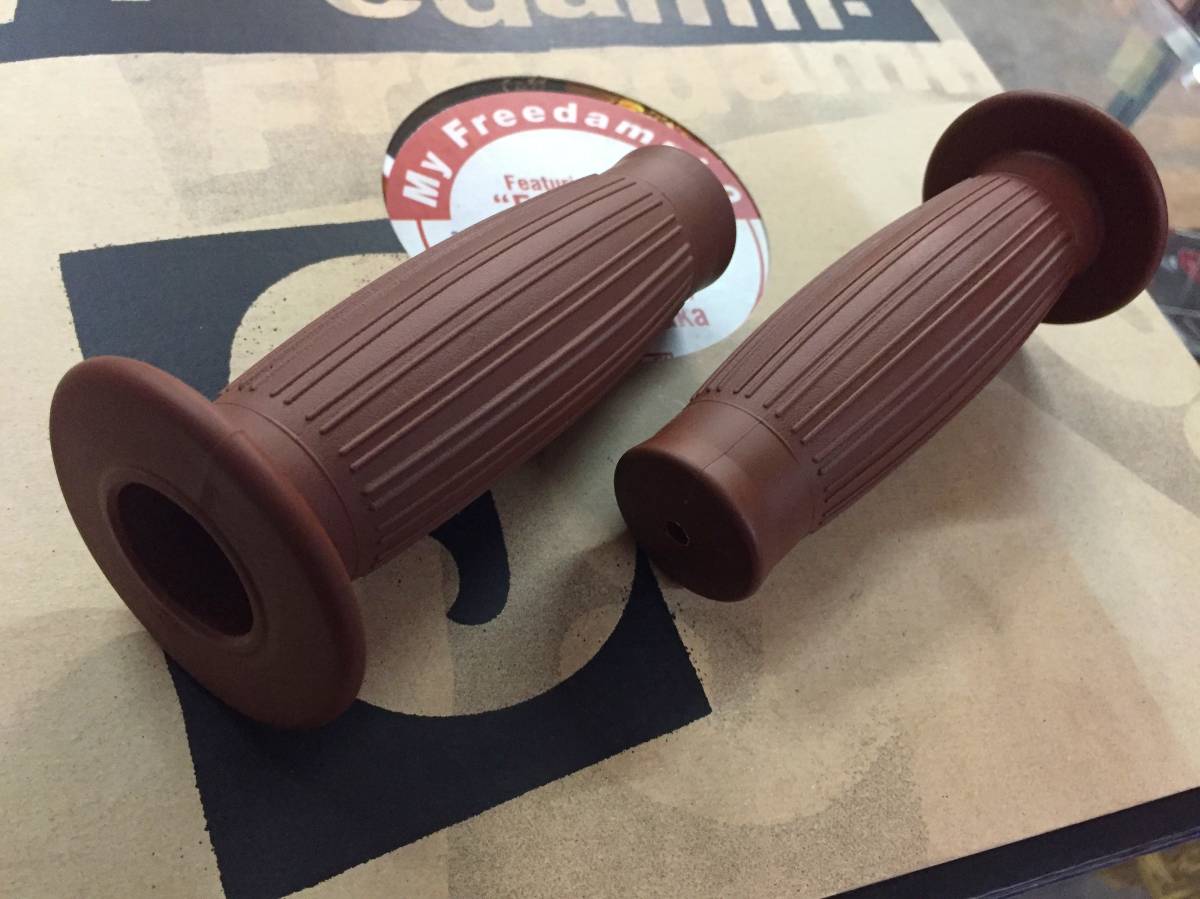 - 非貫通 ミリサイズ樽型グリップ 茶 ブラウン チョッパー クラブマン SR400 SR500 250TR グラストラッカー カスタム チョッパー トラッカー