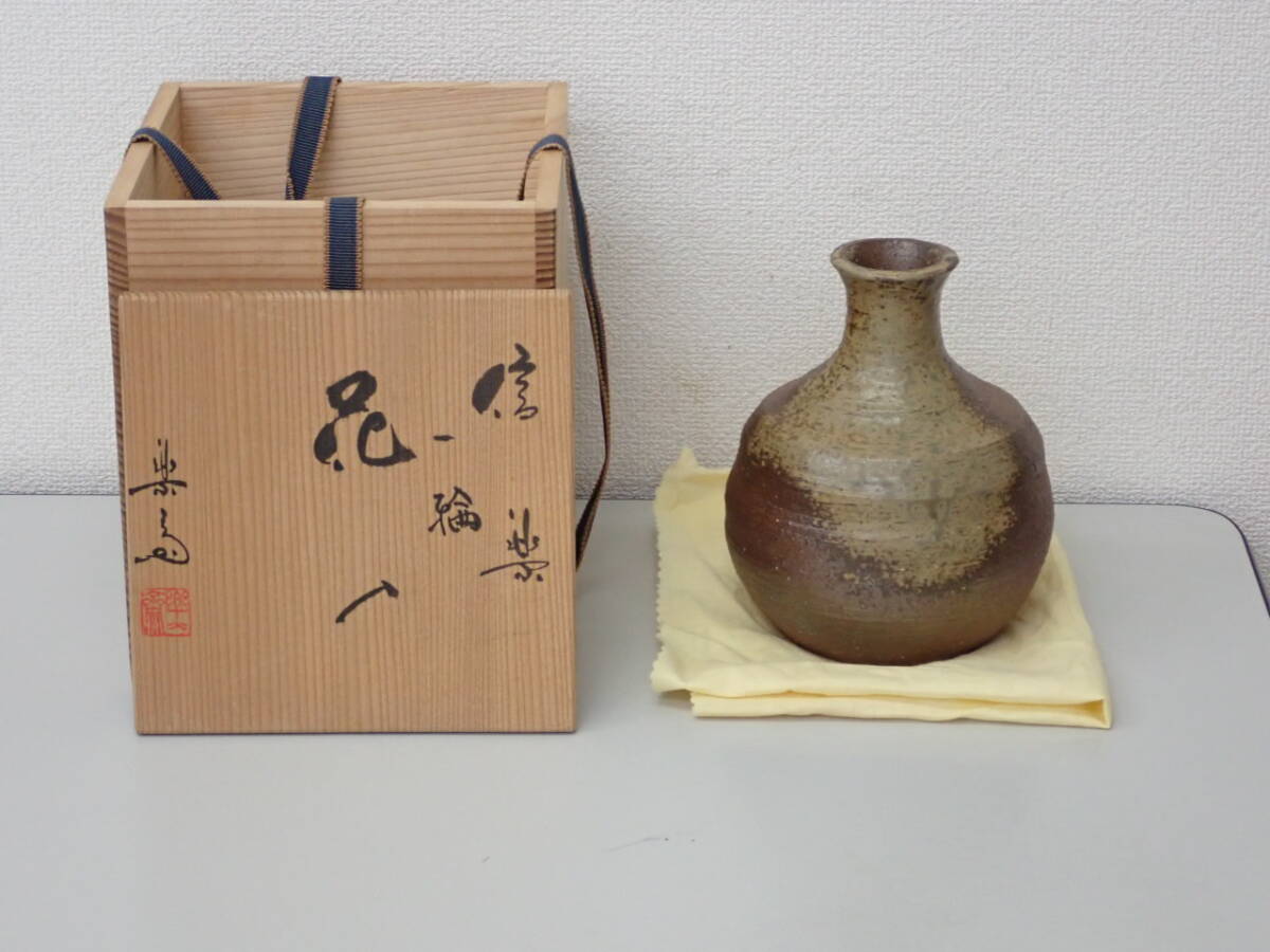 - 陶磁器-18; 高橋楽斎・楽斉 信楽 一輪 花入・花生・花瓶・花器 高さ;約15.5×胴径;12.5×口径;2.4cm 共箱・黄布 ★