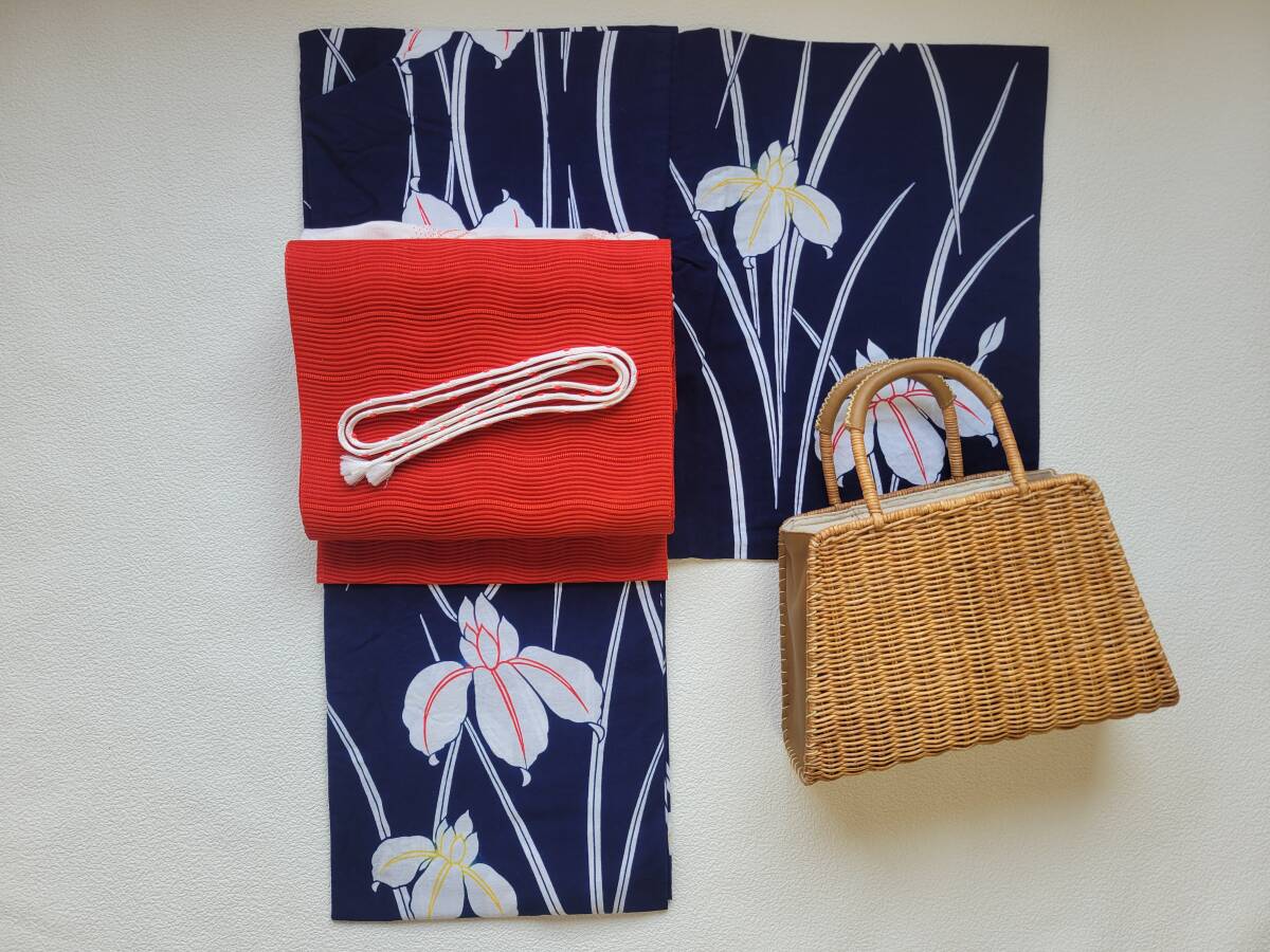 - 浴衣にも♪美品 夏用 絽綴れ 八寸名古屋帯 赤色
