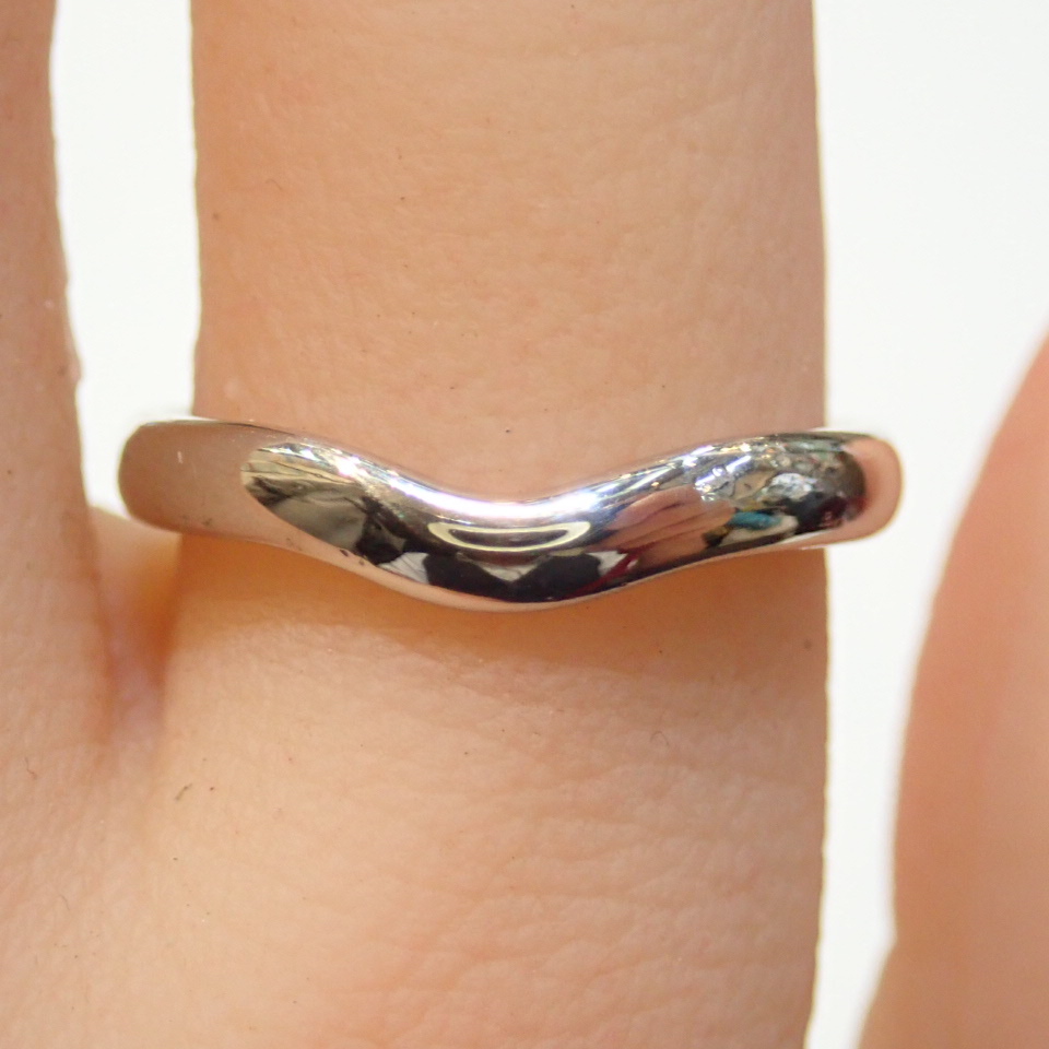 - ■Pt950 TIFFANY&Co. カーブドバンドリング 16号 6.7g■ティファニー ペレッティ Vライン V字 曲線 ウェーブ シンプル指輪■中古磨き仕上げ