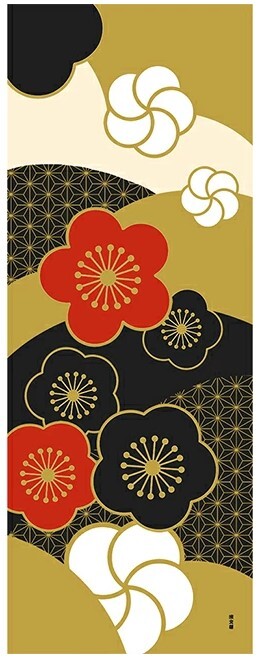- 2025年冬新作 濱文様 絵手ぬぐい 梅にしき お正月 冬 縁起 手拭い おしゃれ かわいい 日本製