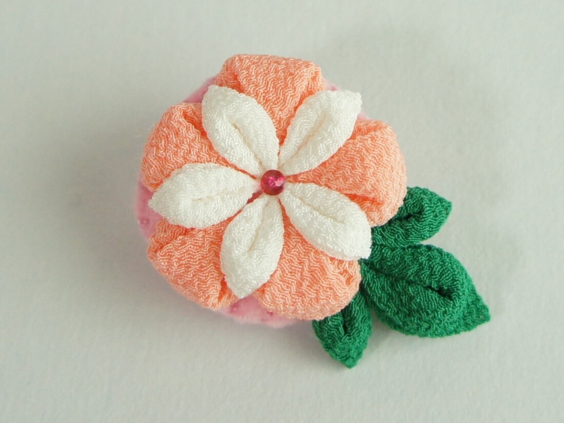 - ♪ ハンドメイド ブローチ 朝顔 あさがお ちりめん フェルト(綿入り) 高分子結晶ストーン使用