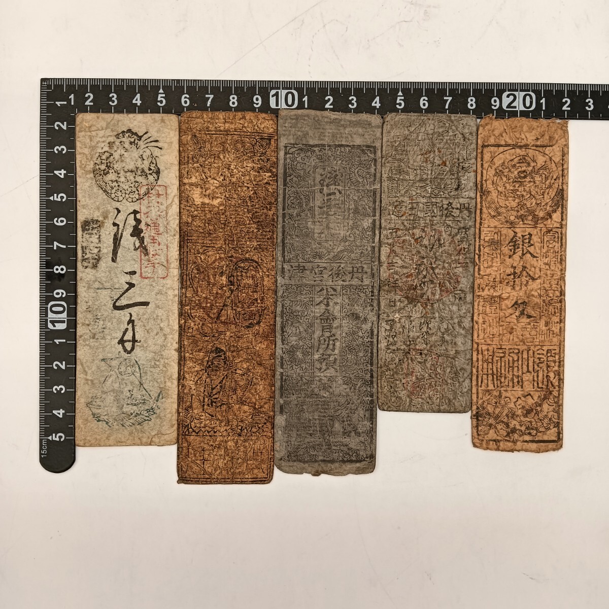 - 【A3552】江戸〜明治時代 古札 藩札 私札 備中 青札 朱印 貨幣 古紙幣 古文書 骨董品 アンティーク 5枚まとめ