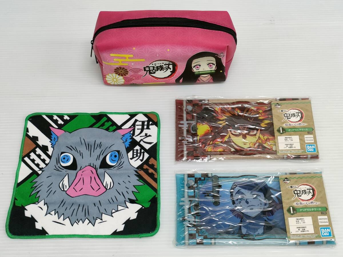 - 【再値下げ!即決!未使用!】★鬼滅の刃★タオル クリアマルチケース BOXペンケース 嘴平伊之助 煉獄杏寿郎 魘夢 竈門禰豆子 4点セット