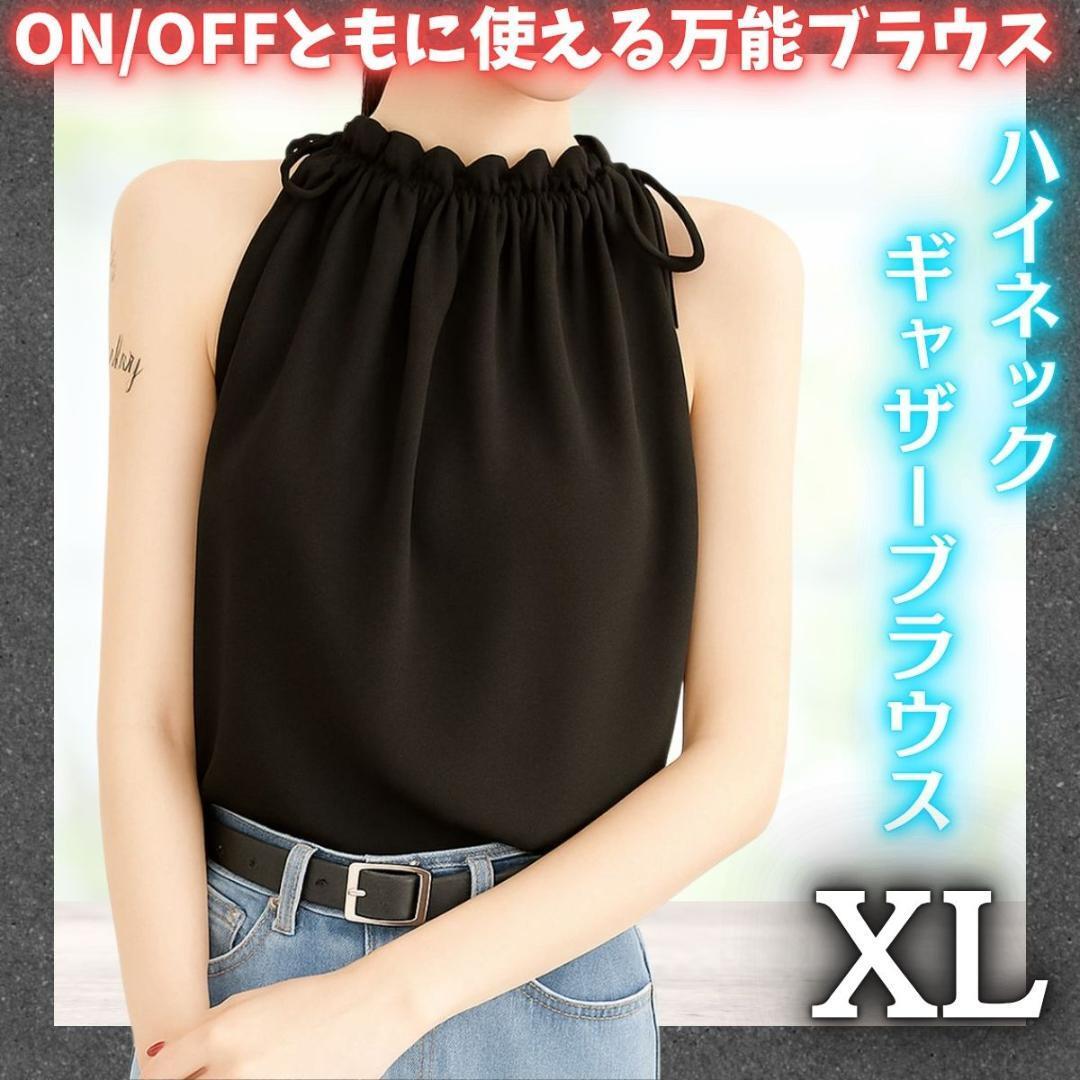 - ノースリーブ ハイネック ブラウス XL シフォン 体型カバー 上品 ブラック