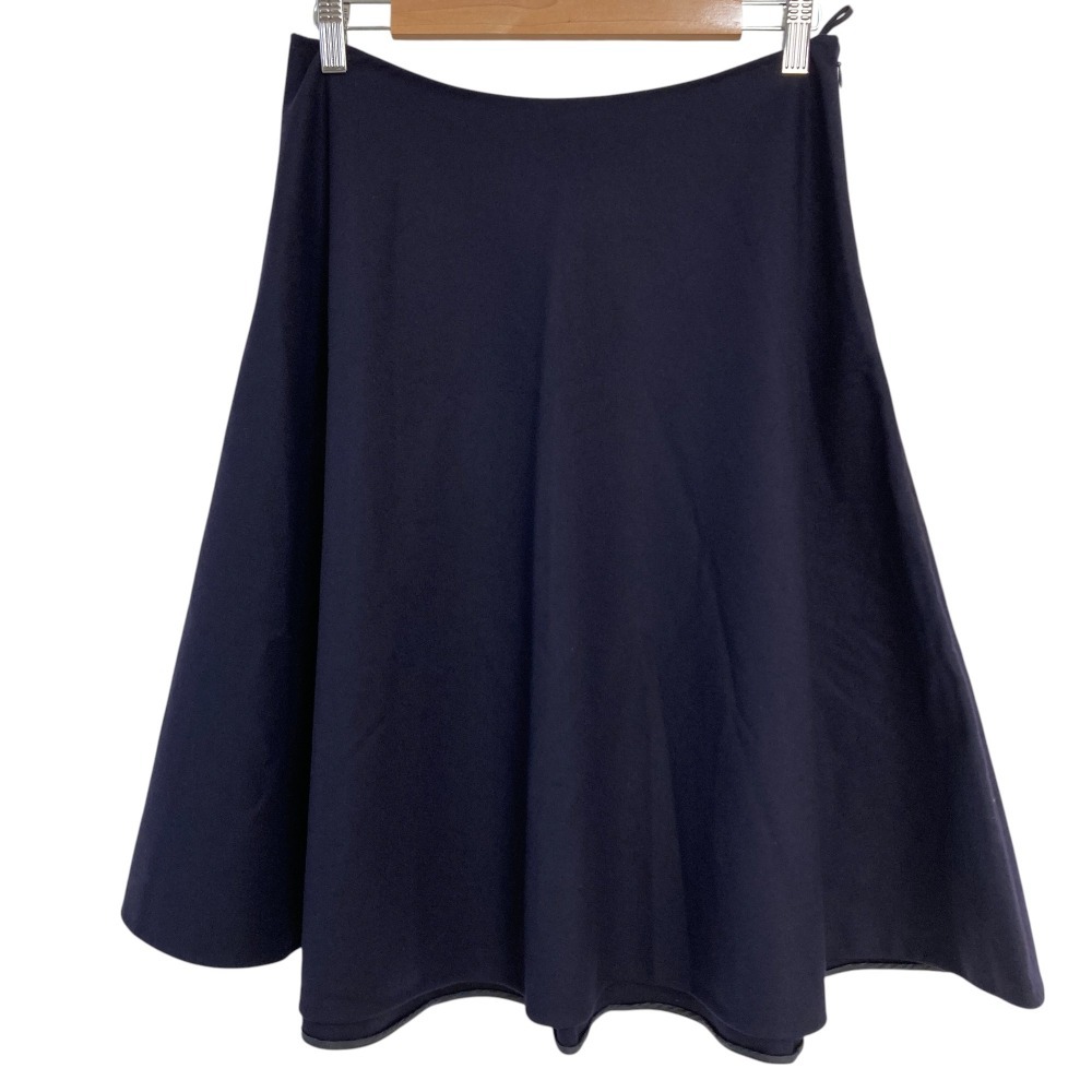 - 美品 PRADA プラダ カシミヤブレンド ひざ丈 フレア サーキュラースカート 42S ネイビー