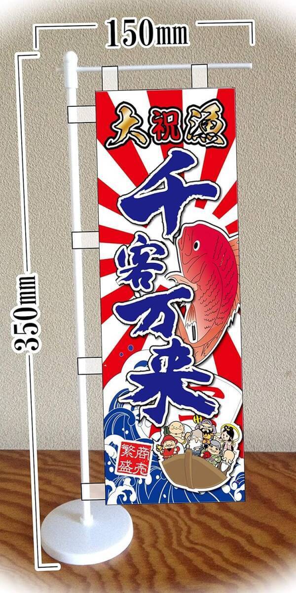 > ミニのぼり旗「祝大漁旗 千客万来 大漁旗 七福神 真鯛 えびす様 新鮮魚介 商売繁盛 千客万来 北海道 大漁祭 寿司」何枚でも送料360円