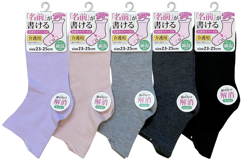 > レディース靴下 綿混 『名前が書ける』 ベロ付ゴムなしゆったりソックス 5足アソートセット 23-25cm 【HO-0159-3】