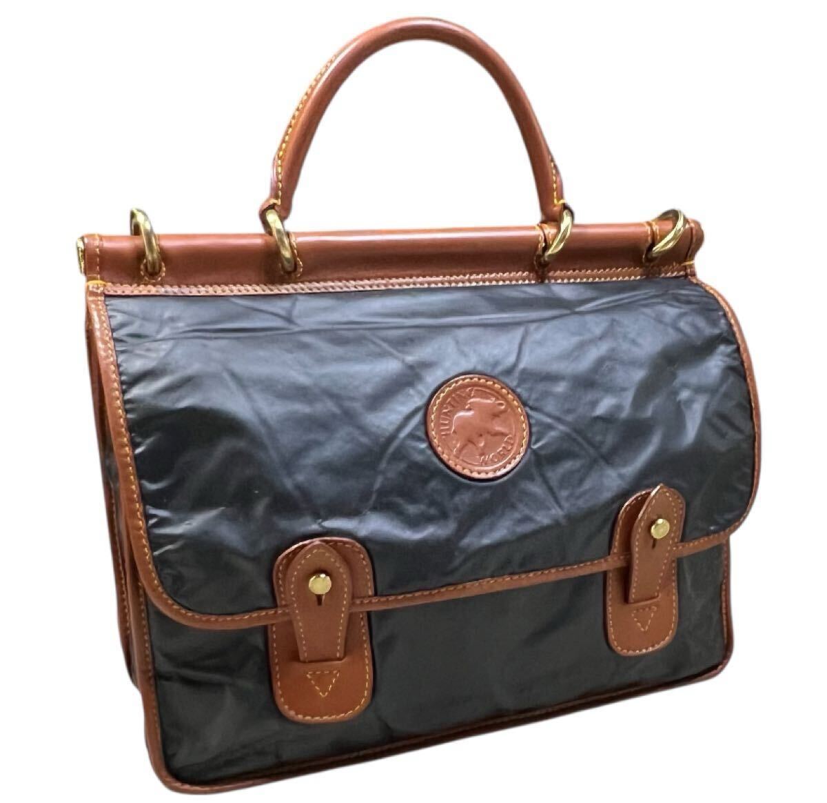 - ハンティングワールド ビジネスバッグ バタューサー ネイビー 鍵付き レザー バチュークロス HUNTING WORLD