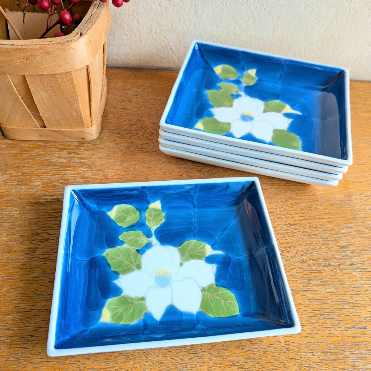 - 角皿 小皿 菓子皿 花柄 宝生之作 5枚セット
