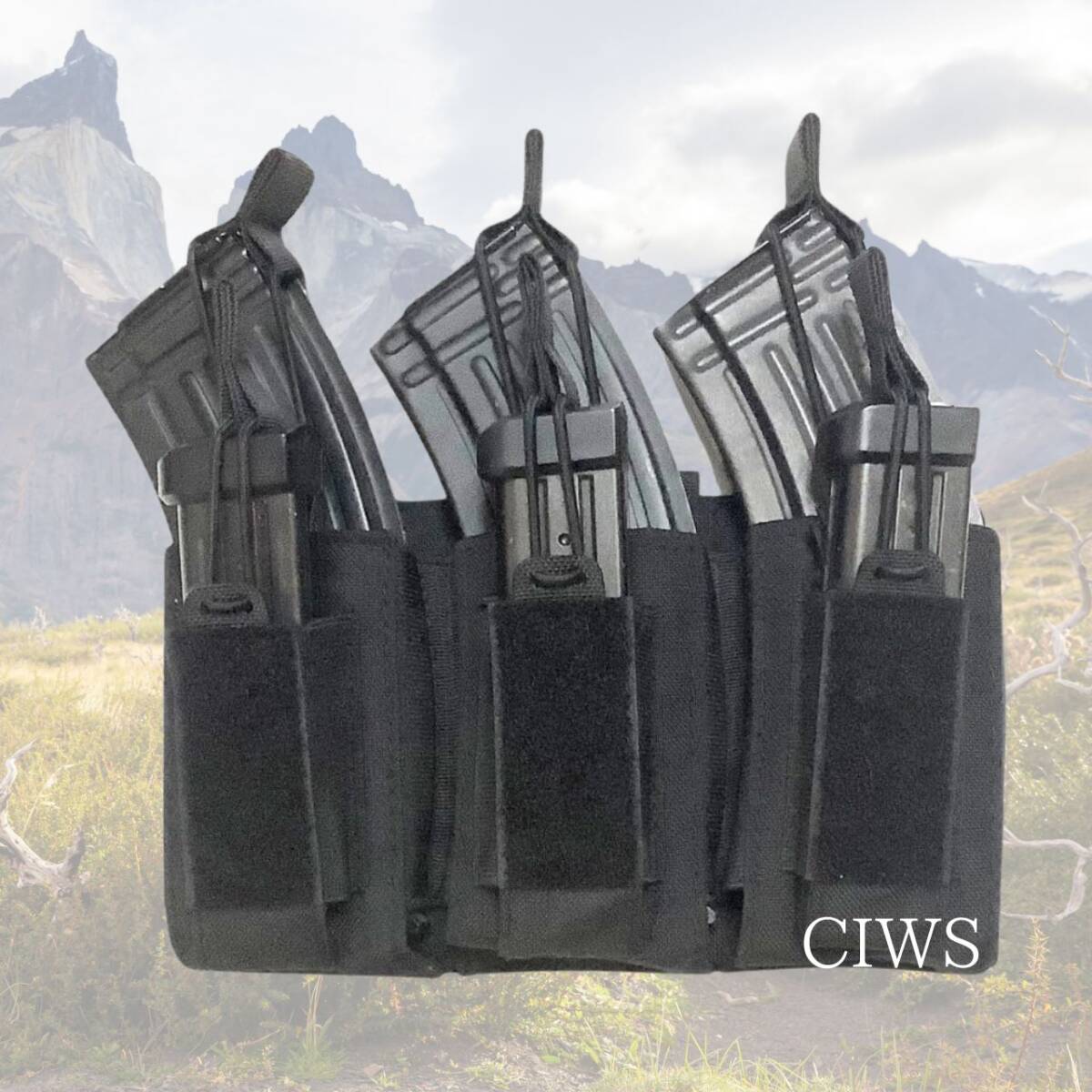 - CIWS オープントップ 3連 カンガルータイプ ダブルデッカーマガジンポーチ7.62mm 5.56mm 9mm M4 M16 AK G3 ハンドガン モール対応 ブラック