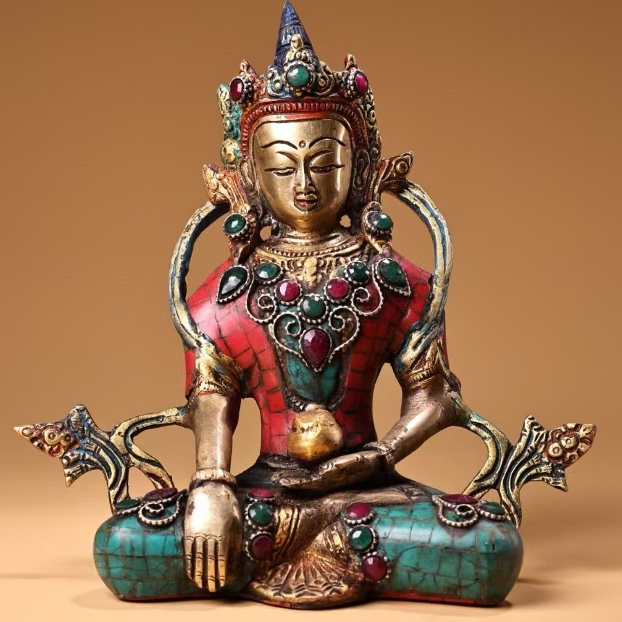 - 仏像 清代 旧蔵 チベット古寺 古銅モザイク宝石彩色釈迦牟尼仏 覚沃仏 銅製 唐物 收蔵品 時代物 古置物 希少珍品 供養品 文房具 仏教6.26