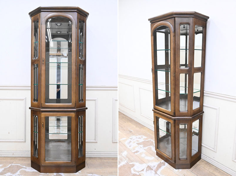 - AD02 美品 高級メーカー カリモク 楢材 飾棚 コレクショケース リビングボード キュリオケース スリムタイプ 内部ミラー ダウンライト
