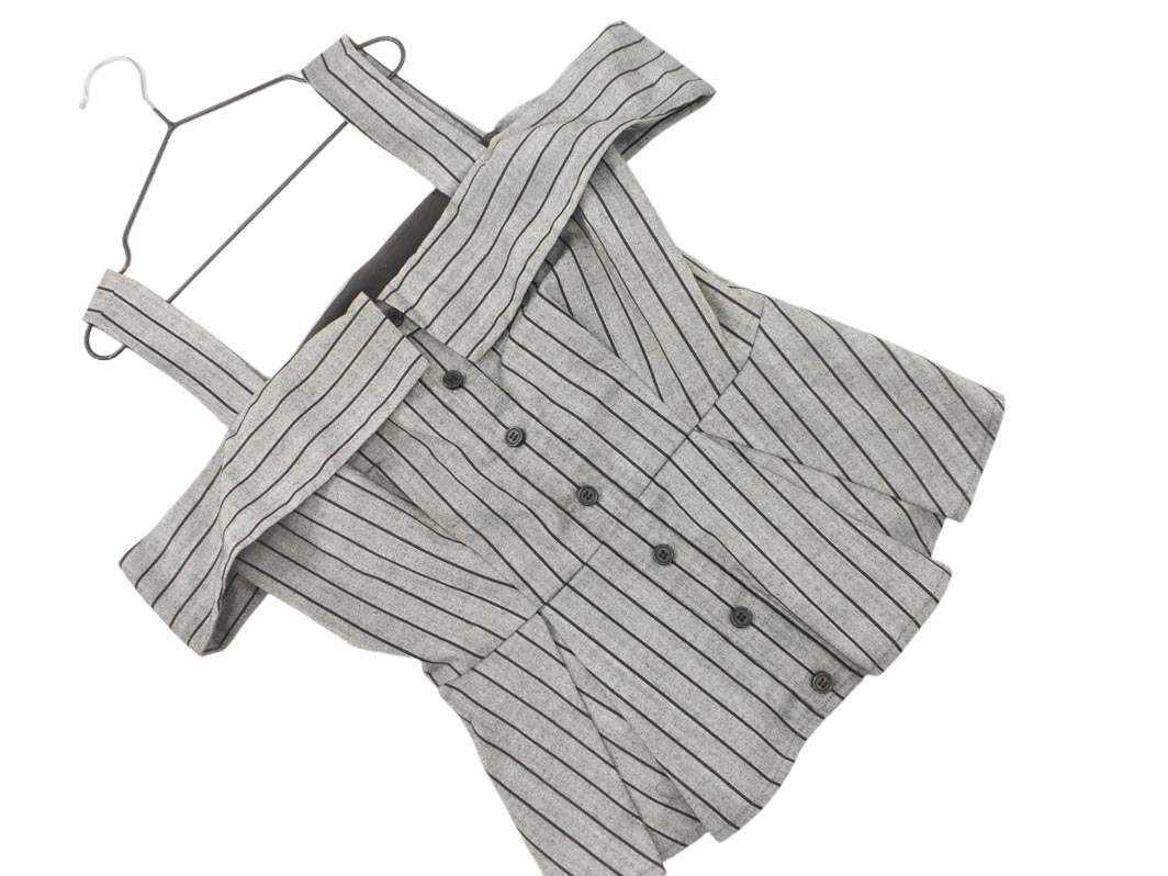 > ネコポスOK Lilidia リリディア ストライプ カットショルダー ペプラム ベスト ブラウス シャツ size0/グレー ■◆ ☆ ffc5 レディース
