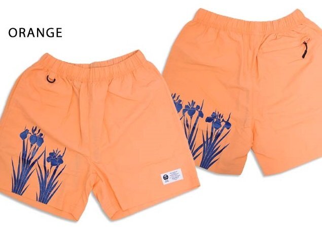 - 勝負ナイロンハーフパンツ◆喜人 オレンジ XLサイズ KJ-52602 和柄 和風 ショーツ 菖蒲 きじん