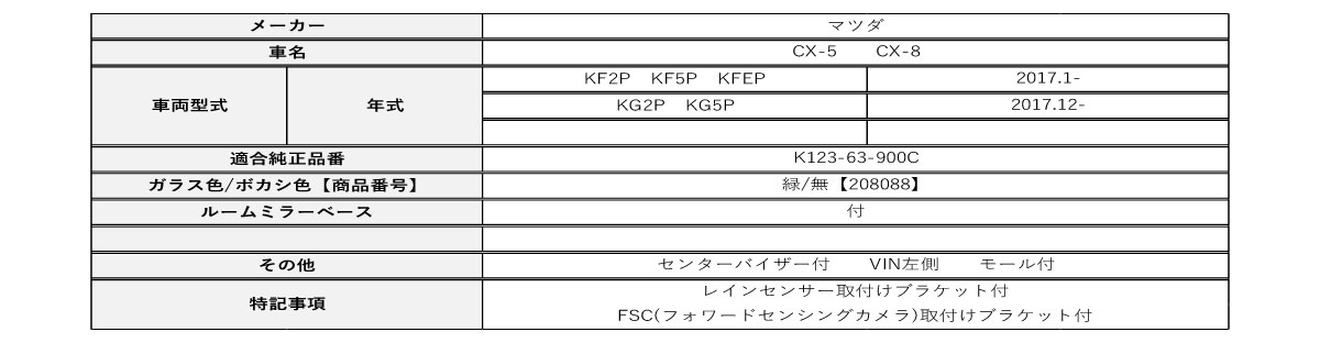 > 4◇新品◇UV&IRカット断熱フロントガラス◇CX-5 KF2P KF5P KFEP CX-8 KG2P KG5P レインセンサー FSC モール付 208088