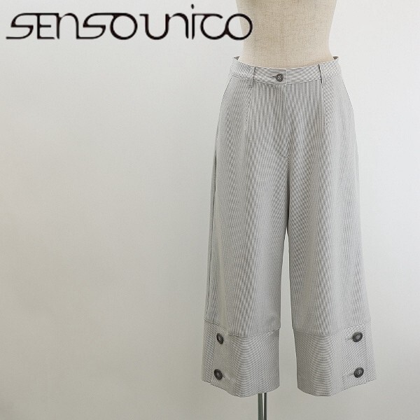 - 美品◆Sensounico センソユニコ ストレッチ ストライプ柄 クロップド ワイド パンツ グレー×ホワイト 38