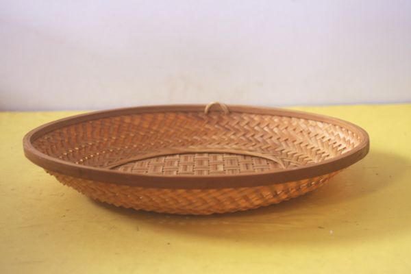 - 竹細工 楕円の竹ザル かご 自然素材 サイズ:約28.5×22×H4㎝/26N6.19-26