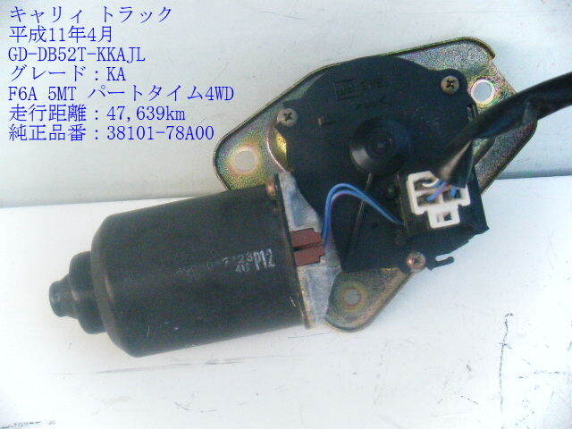 - ◆DB52T DA52T スズキ キャリィ トラック ワイパーモーター 38101-78A00 テスト済み 47,639km [14088]