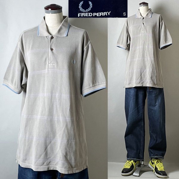 > ★並品【国内正規品 香港製 USED品】 FRED PERRY フレッドペリー M6223 ボーダー ライン デザイン ポロ 半袖 鹿の子 ポロシャツ S ベージュ