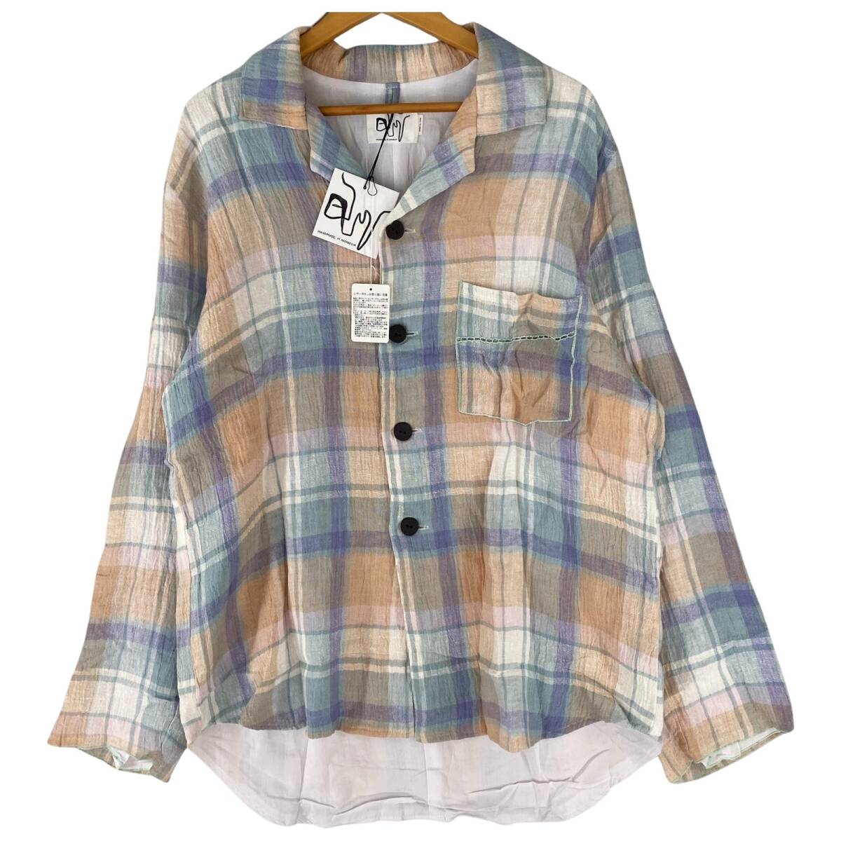 - 美品 EASY TO WEAR イージートゥウェア タグ付き チェック柄 リネン ジャケット size46/ライトブルー×ペールオレンジ