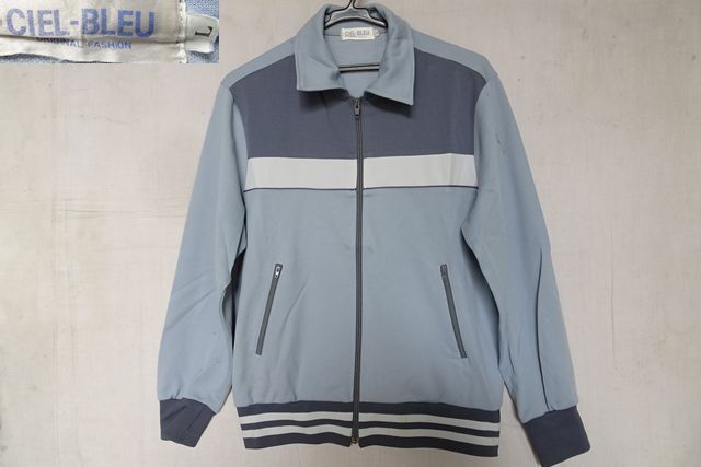 - CIEL-BLEU/長袖トラックジャケット/ジャージ素材/前ジップアップ/ファスナー付ポケット/くすみサックスブルー/Lサイズ(6/27R7)