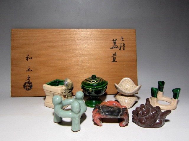 - 川崎和楽 楽蓋置七種 裏千家十五代 鵬雲斎花押 v750