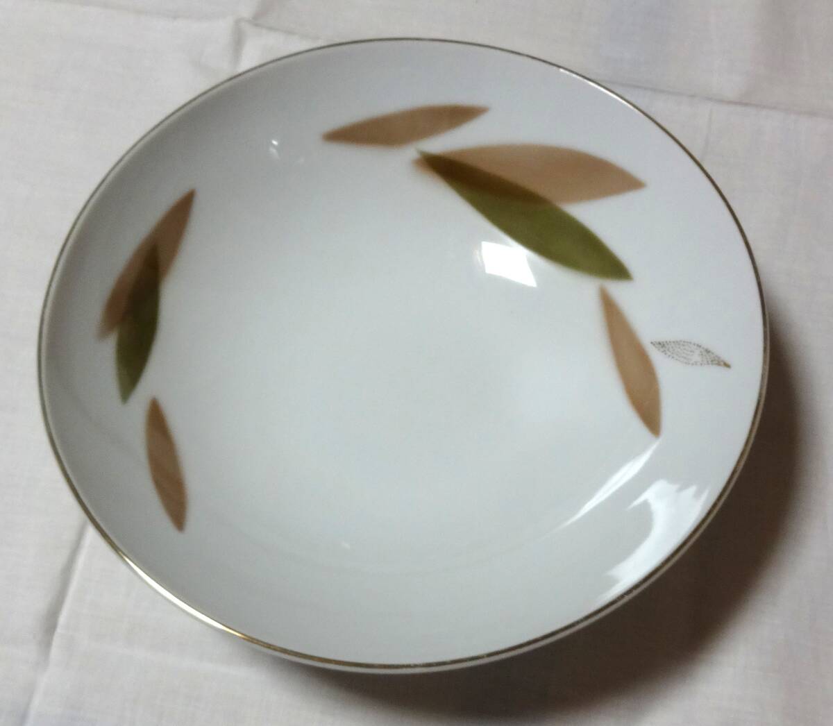 - USED!昭和レトロ!茶系の葉っぱ模様が描かれたサラダボール、ナルミチャイナNarumi Chaina
