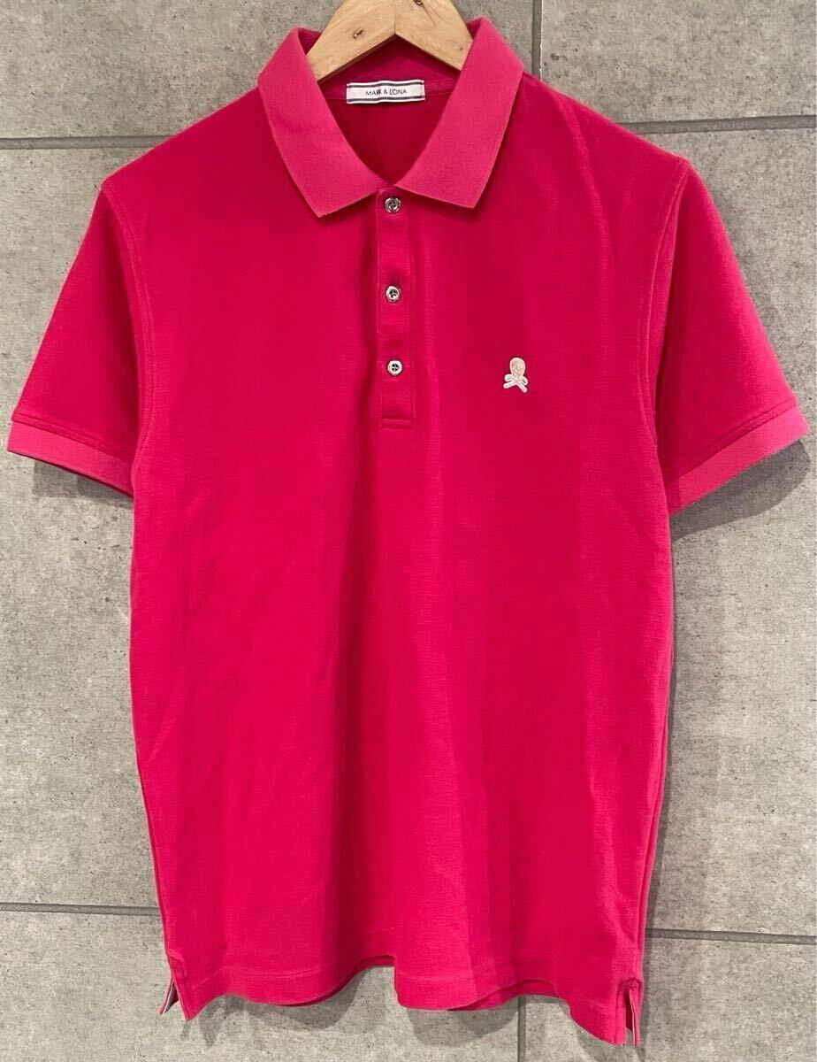- 夏本番! MARK&LONA マークアンドロナ スカルワッペン 襟裏ロゴ 半袖ポロシャツ ピンク XLサイズ レターパック可 ゴルフウェア ○ 新規×