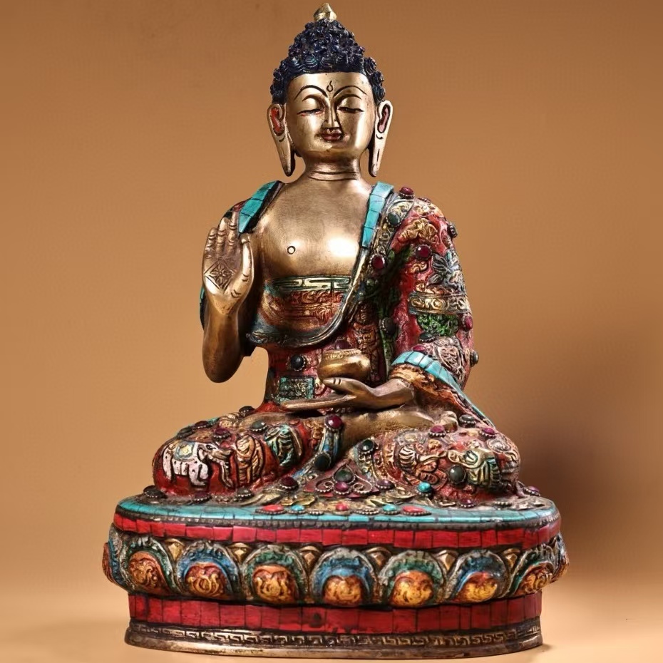 - 仏像 清代 旧蔵 チベット古寺 古銅象嵌宝石彩色蒔絵描金蔵伝大日如来仏 銅製 銅琉金 唐物 收蔵品 時代物 古置物 供養品 文房具 仏教6.26