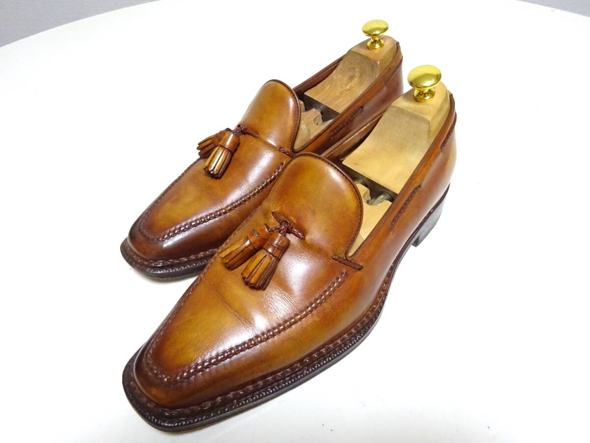 > Bollini ボリーニ Uチップタッセルローファー レザーシューズ 靴 ノルベジェーゼ 手染め パティーヌ 6 24.5cm位 イタリア製