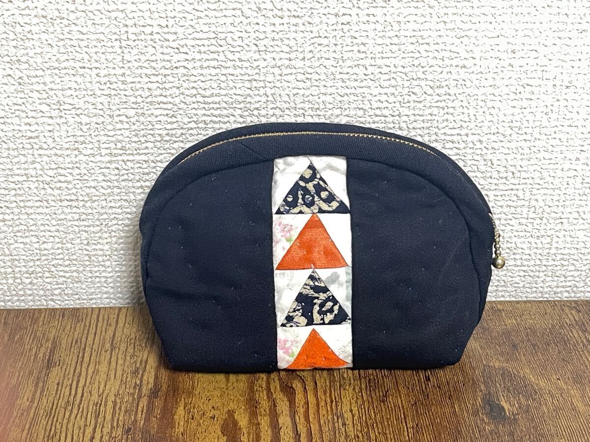 - ハンドメイド リメイク*パッチワークポーチ*三角パッチ・ポーチ*コスメケース*コインケース*小銭入れ*e-08*